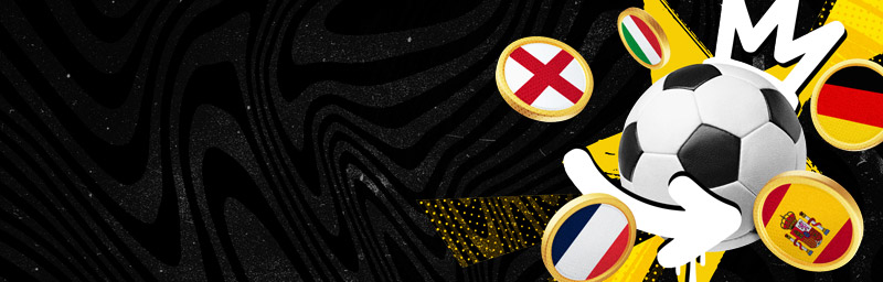 Aseta oikean rahan yhdistelmäveto vähintään kolmesta viidestä Euroopan suurimmasta jalkapalloliigasta: Englanti, Espanja, Italia, Saksa ja Ranska.